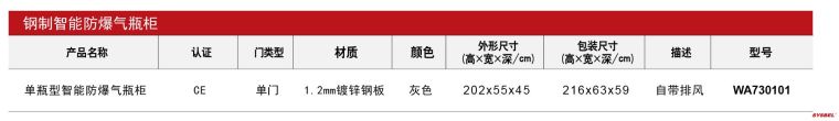 证,防爆合格证号:GYB18.1664X。SYSBEL智能防爆气瓶柜为钢结构柜体,整