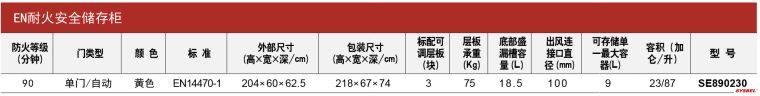 90分钟EN耐火安全储存柜(23Gal/87L)