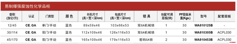 易制爆强腐蚀性化学品柜基于标准安全柜设计,具有同安全柜同样的防火、通风等特点;易制爆强腐蚀性化学品柜内部采用耐腐蚀