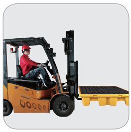 | 可放200L桶个数 | 盛漏量(加仑/升) | 承重量(Kgs.) | 外形尺寸 (高×长×宽/cm) | 叉车操作 | 黄色 型号 | ||||