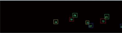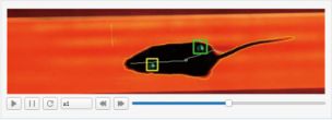 软件包含多种情况可视化:①爪印分类后,出现的爪印会使用相应颜色的矩形框进行框选,并且老鼠身上绘制了了一条白色曲线展现老鼠的体态,如图5所示: