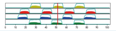 ④展现老鼠在各个时刻内的爪子着地情况,即如图8所示的老鼠爪子的时序图: