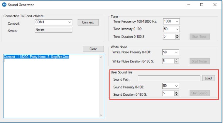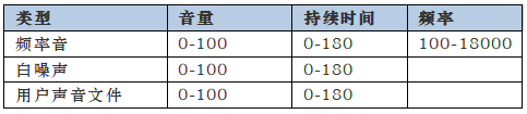 每种类型都可以单独播放或高频音可以用白噪声播放,或者用户声音可以用白噪声播放。在100Hz-18000Hz; 1-130dB ,步进为1dB,或白色噪音范围内设置,发声器含在隔间内,参数范围如下所示: