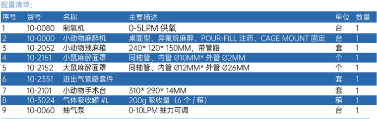 常规手术麻醉系统(单只动物、单人操作)
