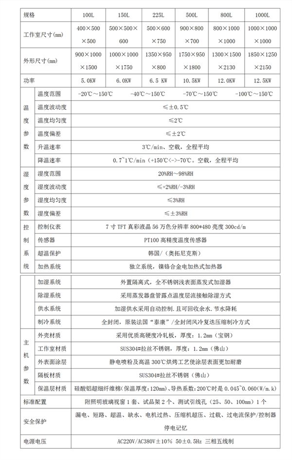 高低温恒温恒湿试验箱技术参数