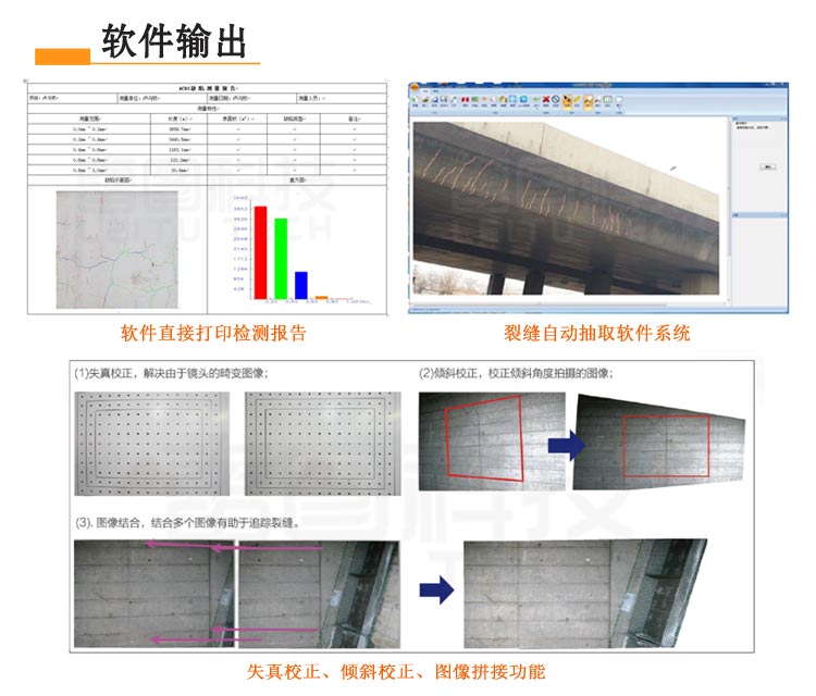 1.可视图像处理:通过无人机获取结构体表面动态视频,对动态视频智能拼接,无需人工手动拼接;