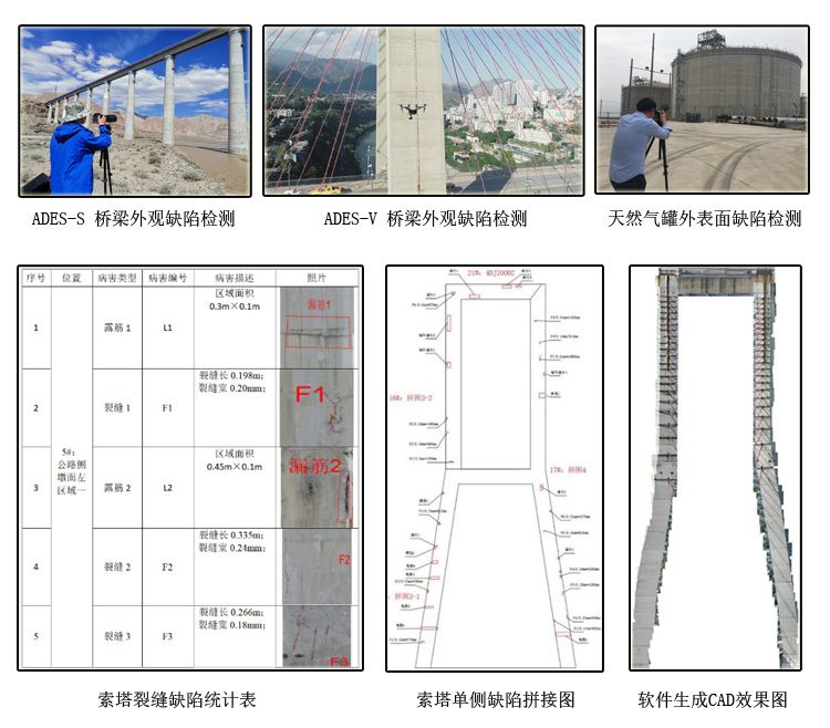 对结构体表面摄取可视图像,可处理静态图像(UAV)以及动态图像(SLR),图像进行处理拼接后,对结构体表面裂缝等缺陷进行自动抽取的系统。该系统可广泛应用于桥梁、隧道、道路、水坝、斜坡、建筑物等以混凝土材质为主的结构体的维持与管理。