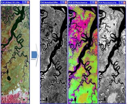 原理:植被健康状况与绿度指数、叶面积指数、叶片水分含量和光利用效率有关