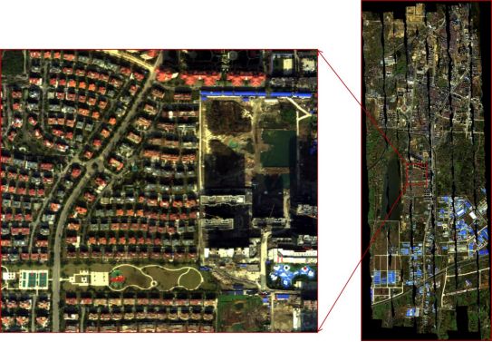 应用简介:图中所示是基于SpecVIEW-VIS的机载成像光谱仪,该仪器由SpecVIEW-VIS、稳定平台及POS模块组成。图20、图21所示是该仪器于2014年12月在湖北荆门飞行获取的数据,图20所示为经过几何校正、航带拼接及辐射校正之后的伪彩图像,图21所示为典型地物的光谱曲线。