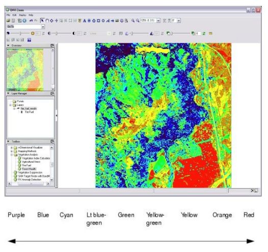 原理:植被健康状况与绿度指数、叶面积指数、叶片水分含量和光利用效率有关