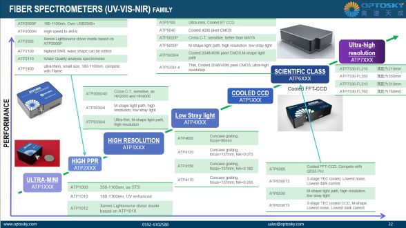 ATP6500DC和ATP6500EM是奥谱天成研制的超低温制冷型微型光纤光谱仪,分别采用制冷至-70℃的超低温制冷探测器或-100℃的EMCCD探测器,是性能的王者,该两种CCD具有**的动态范围,并采用了半导体制冷技术,降低了工作时的暗电流,从而大幅降低了传感器的噪声,获得了**的信噪比,而且提高了测量可靠性,测量结果不随环境温度变化。