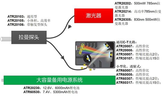 通过配备不同采样支架,可以针对形态分别为固体、液体或粉末状的样品进行检查。OD>8的光学干涉滤光片有效保证了瑞利信号的滤除,紧凑设计使得 ATR20107拉曼探头更易实现拉曼光谱测量。