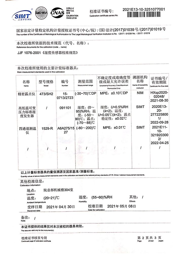 湿度传感器: 罗卓尼克(瑞士)标准探头,精度0.8%RH,±0.1℃,at 23℃±5℃;