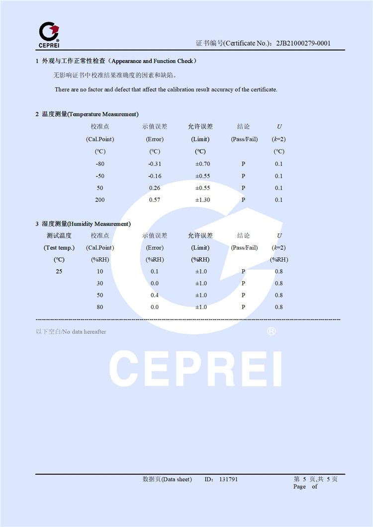 校准证书:
