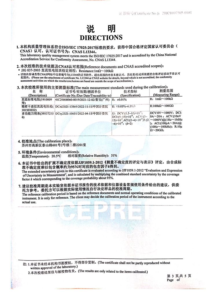 校准证书: