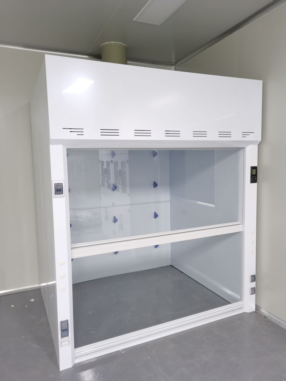 | 10.控制面板为液晶触摸式开关,包含风机开关、照明开关、总电源全罩式日光灯壹只,220V10A插座4只。 |