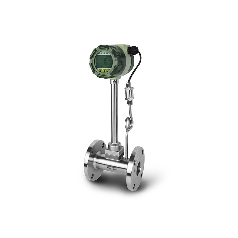 带温压补偿智涡街流量计是将温度、压力、流量信号集于一体,通过智能数字处理器将三种信号混合处理后输出一个补偿后的标准流量,从而实现了对气体、蒸汽的温压补偿功能。由于采用了智能一体化的设计理念,带温压补偿智能型涡街具有结构紧凑、安装使用维护方便的特点。