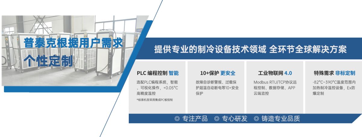PTHF系列高温动态控温系统主要由加热循环系统、冷却系统、控制系统、箱体等组成。加热循环系统包括循环泵、电加热器、膨胀容器、排气阀、单向阀、热电阻、循环管道等组成。冷却系统包括油水换热器、油油换热器(部分设备)、冷却水电磁阀、高温电磁阀等组成。控制系统采用PID控制技术,高清触摸屏显示,设有多项保护功能,确保设备安全运行。通过机组自身的加热与冷却,向外界输送载热流体,满足工艺条件要求。