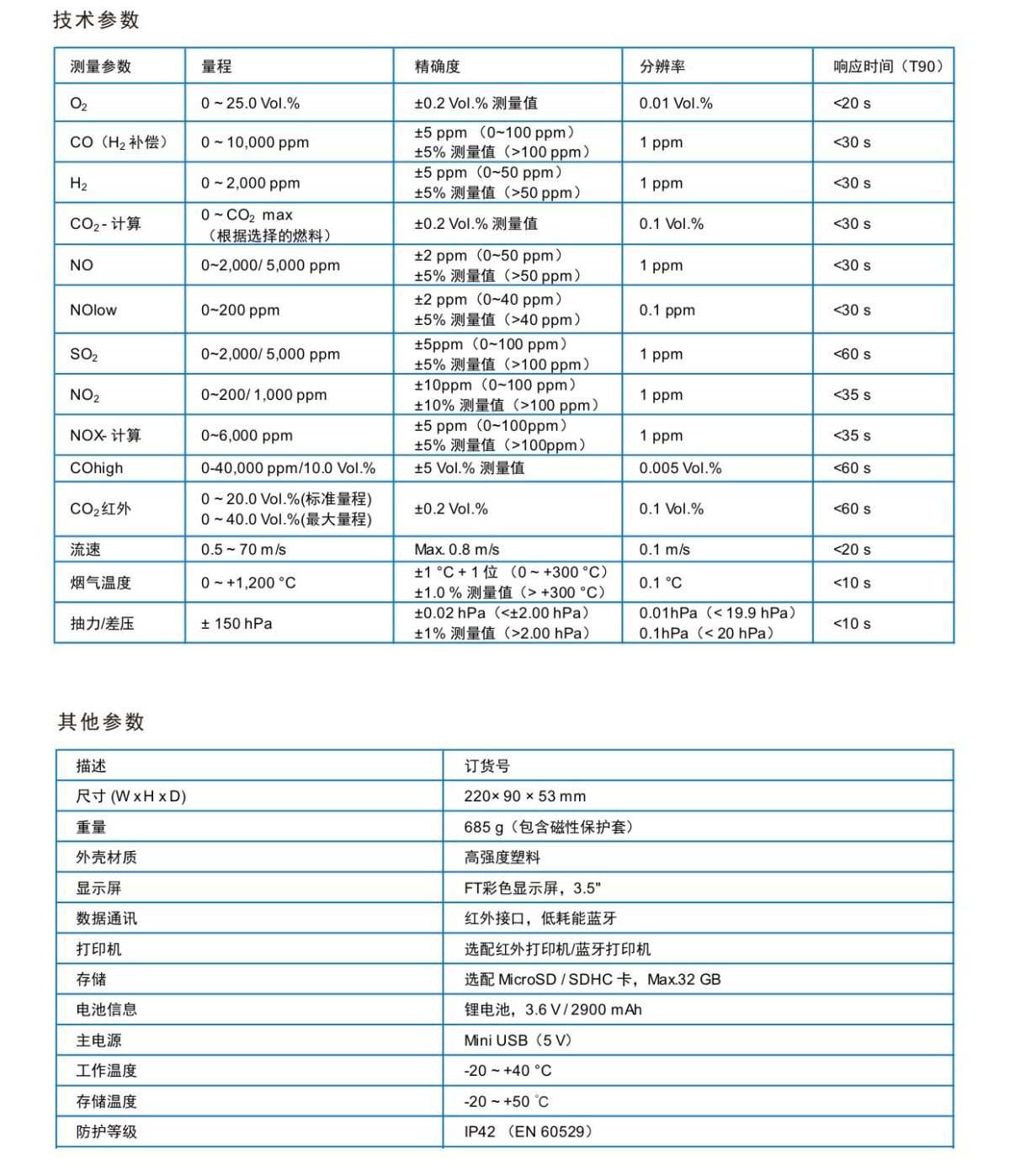 | 特点 | • M60全新升级而来:新的操作按键设计和布局,实体按键,功能明确。传感器精度和使用寿命更优; •标配长寿命电化学传感器,O2传感器使用寿命≥5年; •标配CO/H2高量程传感器,实测量程达10000ppm,解决调试中因为超载造成的CO反复中毒问题; •内置双抽气泵,带新鲜空气反吹功能。确保CO传感器在烟气浓度超载的状态下不会损坏 ; •标配测量数据自动记录功能,记录时间1~999s可调; •标配MicroSD卡4GB,最大可选32GB,用于实时的测量数据存储和软件升级; •仪器开机具备传感器自动检测及校零功能,传感器响应时间极短,<20s,精度高,NOlow低氮测量,误差≤2ppm; •可通过手机/pad/电脑远程监控测量过程:显示测量值的曲线图和柱状图; •内置二维码功能,每组测量值都能生成一个二维码,通过扫描二维码后可将数据直接保存于手机; •锂电池续航时间长达12h,测量过程亦可同时充电; •自动计算参数:CO2 , NOx,CO(未稀释) ,温差 ,燃烧效率 ,过量空气系数,烟气损失值,露点; •品质可靠,100%德国制造; |
