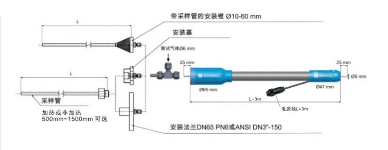 TMA65系统预留伴热管线接口,可随时选装电加热管线,以实现高湿低硫的精准采样。集成烟气过滤器的加热管线可以作为一个整合的部件,同时也可作为便携式探头使用。