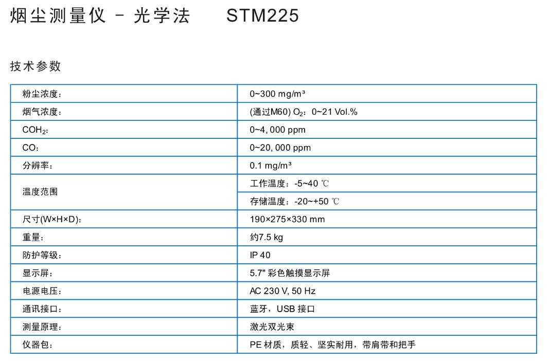 | 应用 | 便携式烟尘分析仪STM225适用于锅炉燃烧系统烟气中粉尘颗粒物浓度的快速测量 ,尤其适用于固体燃料系统 ,如木质颗粒物锅炉、生物质锅炉、燃煤锅炉等。STM225亦可通过蓝牙与烟气分析仪 M60结合使用,实现烟气和烟尘的同步测量 ,给客户带来极大的便利。 |