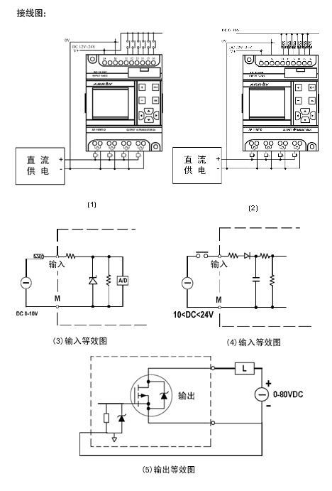▲此型号为直流供电,6点DC(带模拟量)输入,4点晶体管输出