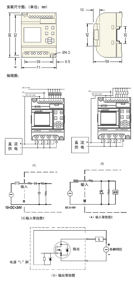 ▲此型号为直流供电,6点DC(带模拟量)输入,4点晶体管输出