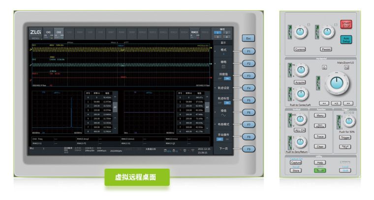 为了解决仪器不在身边需要远程读取数据的难题,我们开发了虚拟远程桌面和FTP功能,只需要将ZDL3000示波记录仪接入局域网,用户就可以通过上位机软件打开虚拟界面对ZDL3000进行实时控制,同时用户依然可以通过FTP对ZDL3000中的波形文件进行读取,此速度最快达到500M/s,是通过U盘读取数据的100倍。