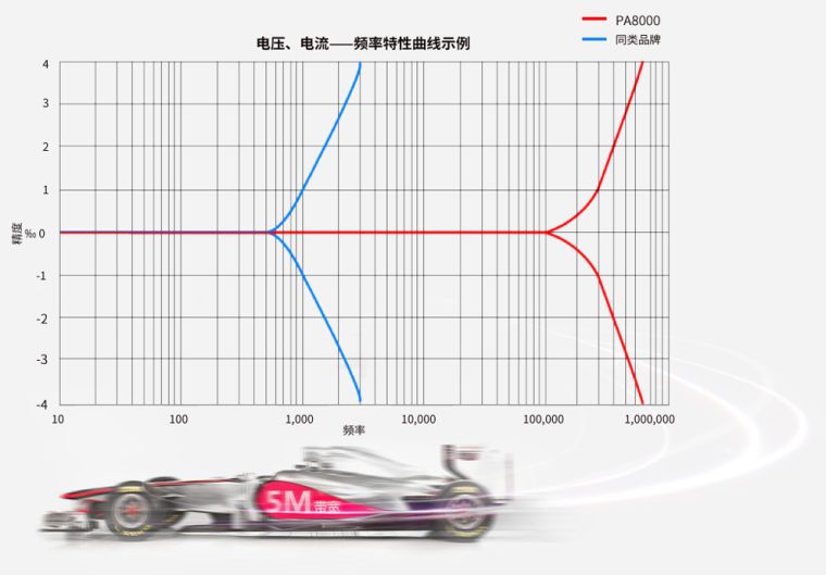 PA8000是行业内为数不多的一款具有0.01%精度,电流与电压频率带宽高达5MHz的功率分析仪,完全满足未来以SiC为代表的高速开关设备的功率测量。