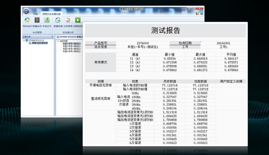 在高铁逆变器的测试场合,一般都是高电压、高电流环境,ZIT6000高铁逆变器检测仪器可以通过内置的WIFI功能,将数据远程传出到电脑,然后通过专业定制的软件分析数据,保障了人员的安全性。