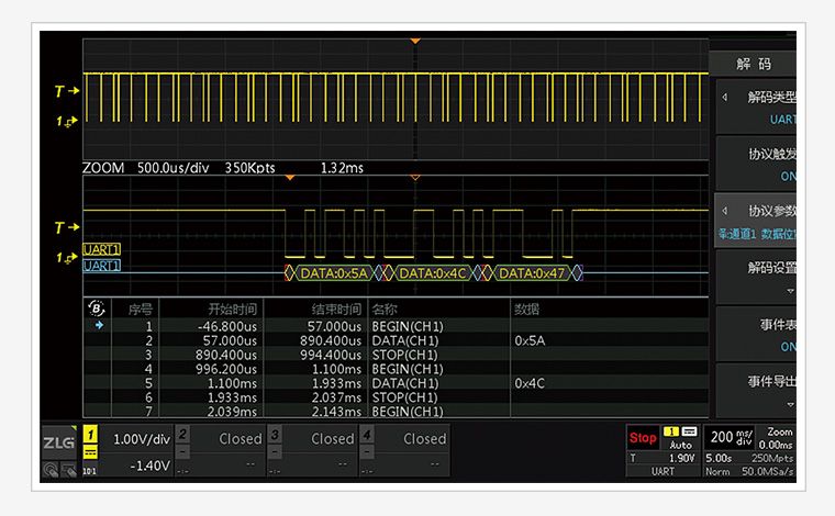 ZDS5054Pro具备全面的智能分析功能,可帮助工程师加快产品调试进度。
