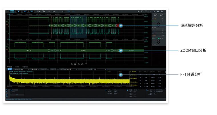 | 协议解码 | 41种,CAN、LIN(LIN1.3、LIN2.0)、FlexRay、MVB、CAN-FD、SENT、 WTB、1-WIRE、I2C、SPI、UART、I2C device、USB1.1(USB2.0全速)、PS/2、Manchester、DiffManchester 、WIEGAND、Miller、ISO7816、DALI、MIPI-DSI、NEC红外传输协议分析、Philips RC-5、Philips RC-6、ModBus、RS485、RS232(485和 232使用 UART解码)、DS18B20、SHT11、DHT11、I2S、TDM、MIL-STD-1553B、HDQ、SD-SPI、SD-SD、USB-PD、QC2.0/3.0、MDIO、MIPI-RFFE、SPC |