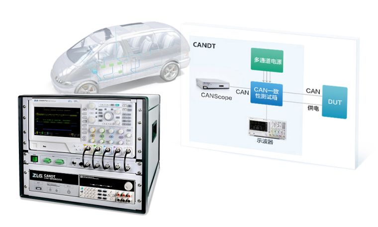 CANDT是基于CANScope强大的CAN总线底层测试分析基础,配备必要的电压源、PLC等核心外围设备,可自动化完成汽车零部件CAN节点物理层、链路层及应用层测试的CAN一致性测试设备。物理层测试的目的是验证节点及测试系统在电路设计、物理电平特性等方面的性能,就是保证节点能够正确连入总线的基础,其测试内容包括电阻电容特性、节点差分电阻、故障容错测试、CAN线上的物理电平特性等等。数据链路层的测试目的是保证每个节点的通讯参数能够保持一致性,所组成的网络能够正常有效的工作,内容包括位定时测试、采样点测试、SJW测试等等。