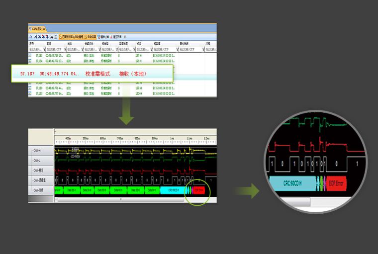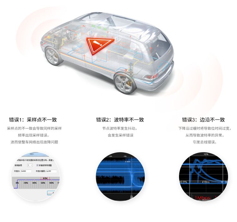 新能源汽车主机厂和零部件企业在CANDT一致性测试后,对于测试报告中显示测试不通过的问题,可以用CANScope进行故障定位和排查,加快CAN总线稳定的研发速度。