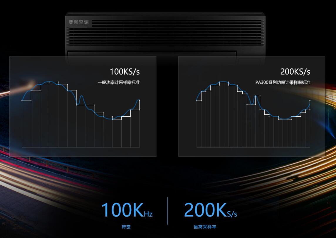 PA323系列数字功率计具有高至200KS/s的采样率和100KHz的带宽,能够测量频率较高的信号,满足变频家电、开关电源等新技术产品的功耗测量。