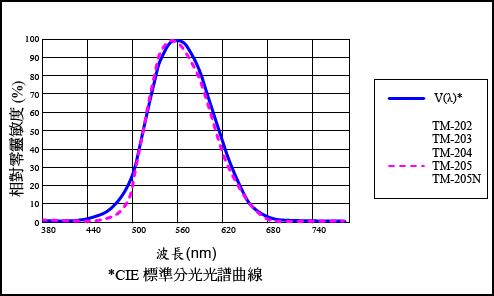 注1:TM-202及TM-203及 TM-205/TM-205N分光光谱曲线相同 6% 。