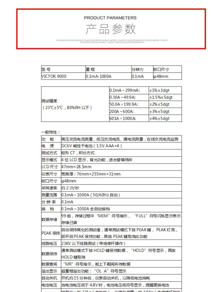 型号:VICTOR 9000