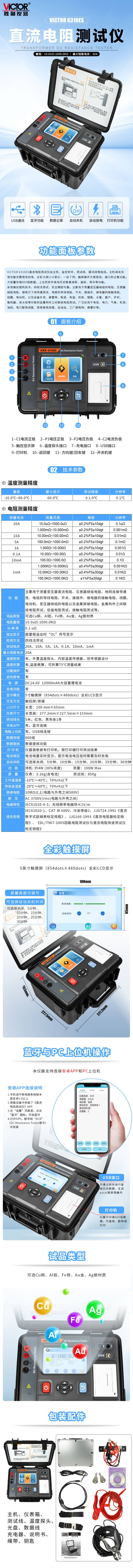 VICTOR 6310ES 直流电阻测试仪又名变压器直流电阻测试仪、直流电阻快速测试仪、接地导通测试仪,采用微处理机技术,四线法测试,安全精密可靠。