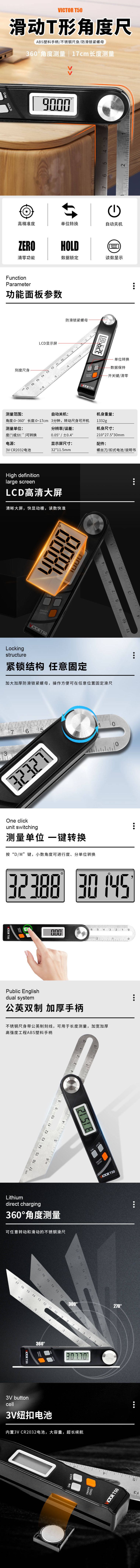 VICTOR T50数显滑动T形角度尺