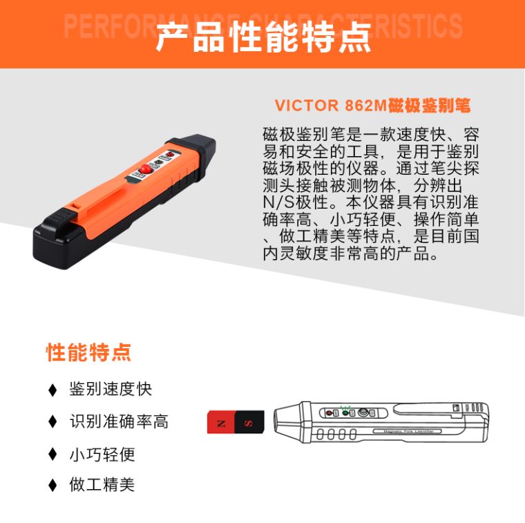 产品型号:VICTOR 862M产品名称:磁级鉴别笔