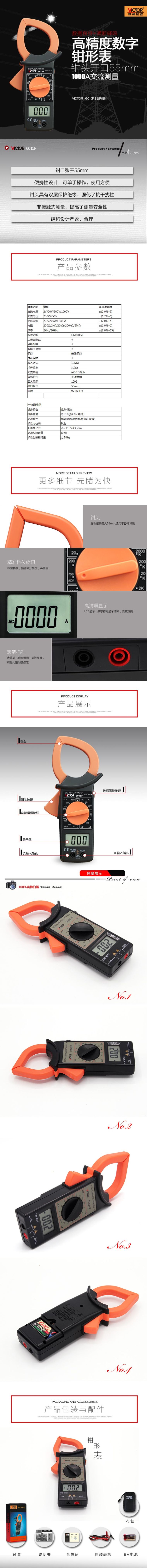 产品型号:VICTOR 6015F 操作方式:手动量程产品名称:钳形表VICTOR 6015F 显示位数:3 1 2位说明书下载
