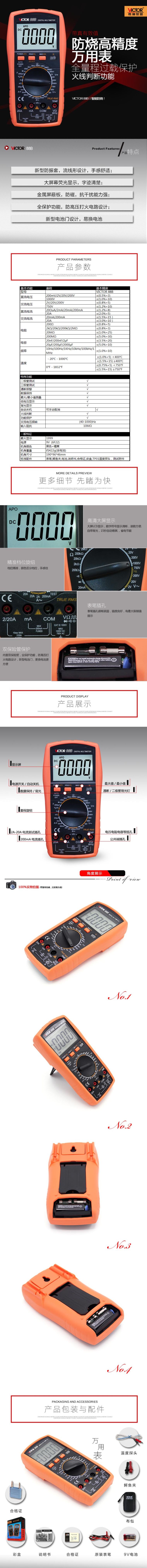 产品型号:VICTOR 88B操作方式:手动量程产品名称:数字万用表VICTOR 88B显示位数:3 1 2位特点:1、新型防振套,流线形设计,手感舒适