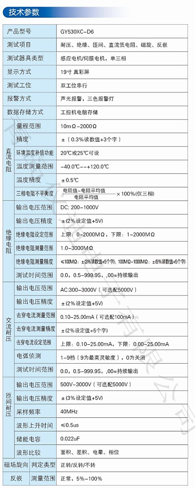 1.耐压、绝缘、匝间、电阻、磁场旋向、反嵌,一次接线完成全部测试;