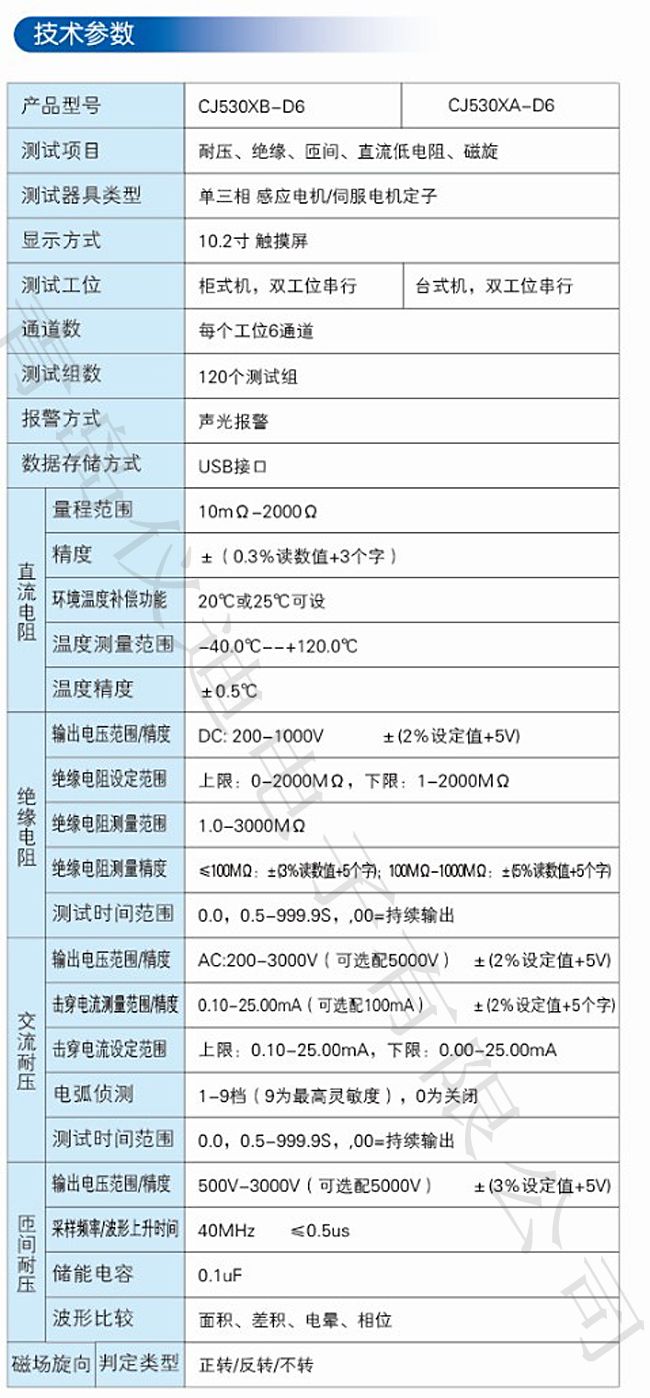 1.耐压、绝缘、匝间、电阻、磁场旋向,一次接线完成全部测试;