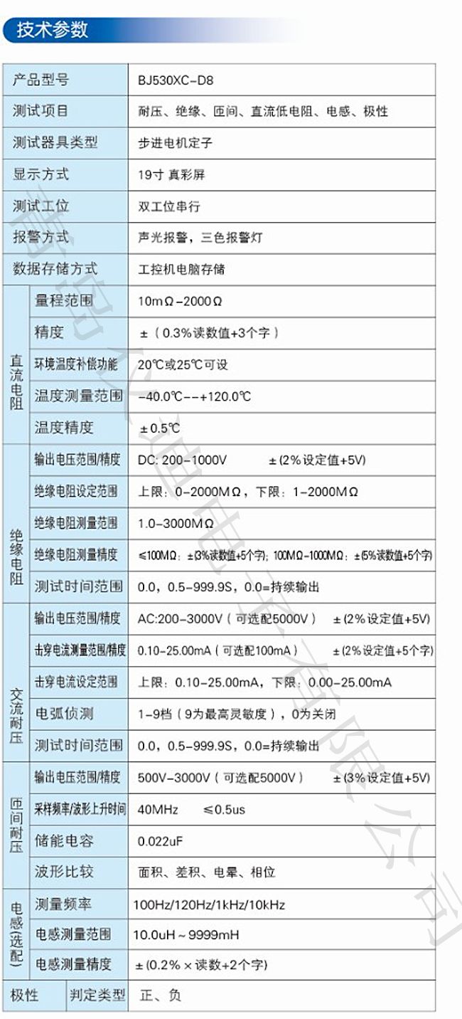 1.耐压、绝缘、匝间、电阻、磁场旋向、反嵌、电感、极性,一次接线完成全部测试;