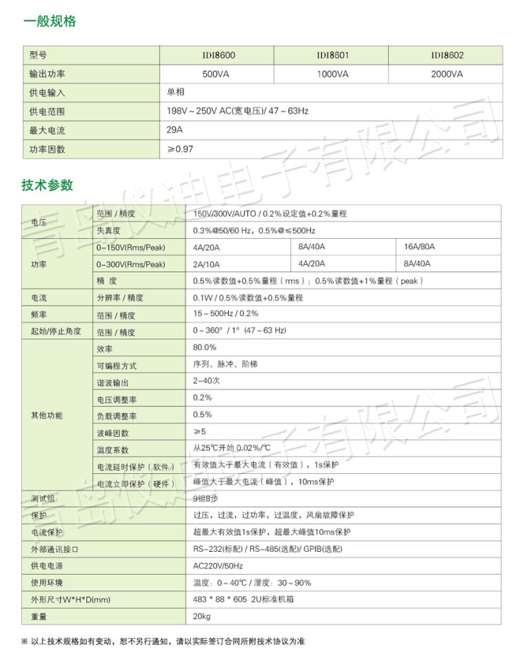 12.输出品质高,带载能力强,具有过压、过流、过载、过热保护、故障保护功能,可靠性高;