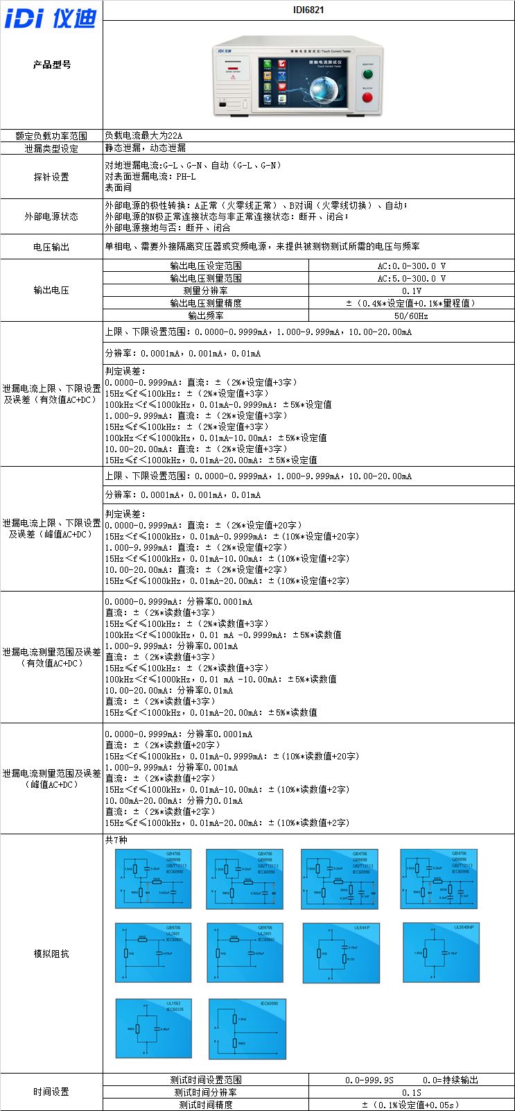 1.提供7组模拟阻抗;