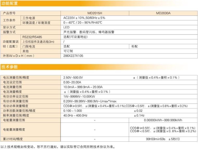 4.电流、功率上下限设置和超限声光报警功能;