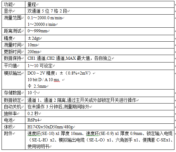 测量范围最大2000m/min,计算时间最短10ms,高速进行速度、转速和距离测量比较任意2通道速度(2通道独立显示并保持)