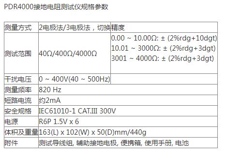 ■ PDR4000数字式接地电阻测试仪技术参数